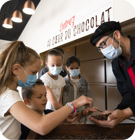 En plein cœur de son site de production, découvrez sous vos yeux, les gestes et le savoir-faire des chocolatiers animés par la passion du métier.